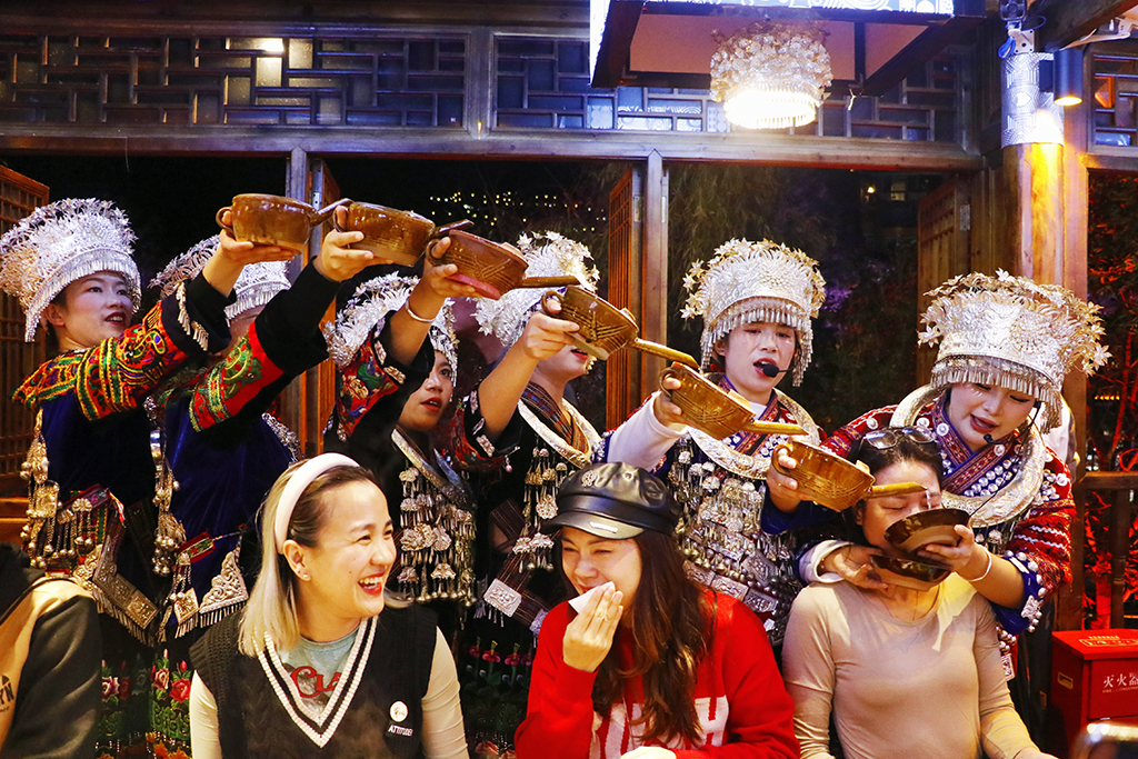 Vietnamese visitors experience the Guizhou culture. [Photo provided to chinaservicesinfo.com]