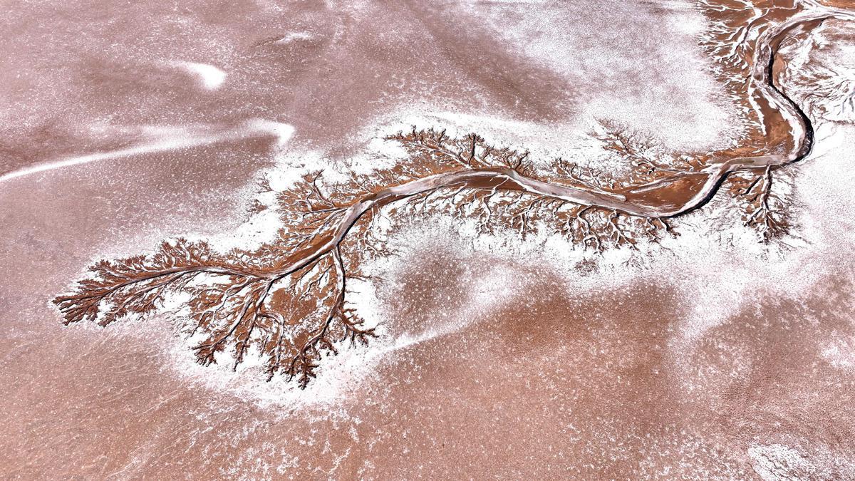 The estuary of the Yellow River in Dongying, Shandong province, received snowfall over the weekend. [Photo by Yang Bin/for chinadaily.com.cn]
