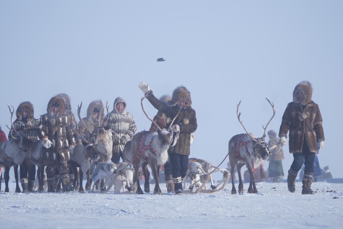 A performance featuring reindeer is staged at the opening ceremony of the 20th Ice and Snow Naadam Fair in North China's Inner Mongolia autonomous region. [Photo by Sai Han/provided to chinadaily.com.cn]