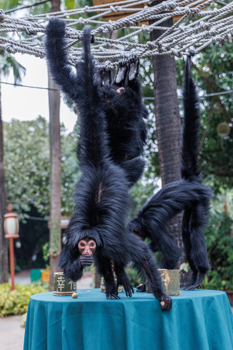 Staff at the Guangzhou Chimelong Safari Park in Guangzhou, the capital of Guangdong province, prepared Winter Solstice meals for its giant pandas, black spider monkeys, and other animals to celebrate the arrival of the traditional Chinese solar term. [Photo provided to chinadaily.com.cn]