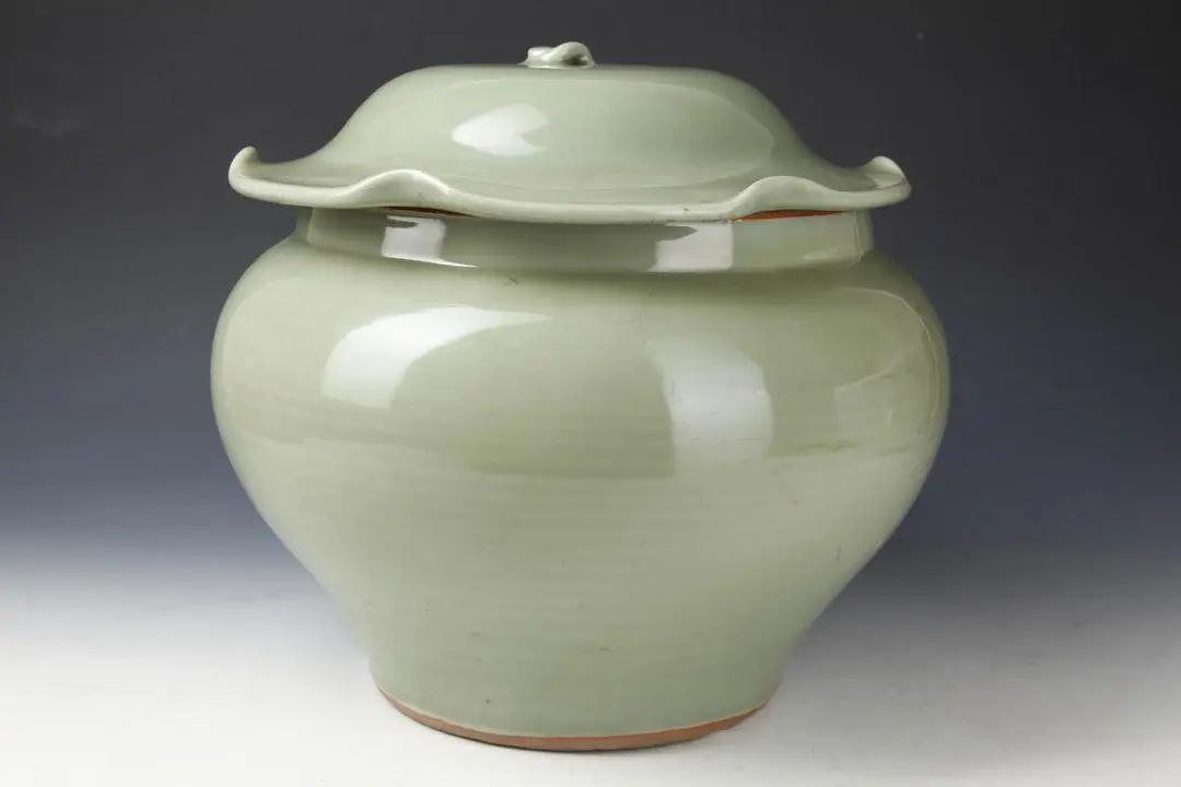 A celadon jar with a lotus leaf-shaped lid, Longquan ware, Ming Dynasty (1368-1644) [Photo/Official WeChat account of the Tianjin Museum]