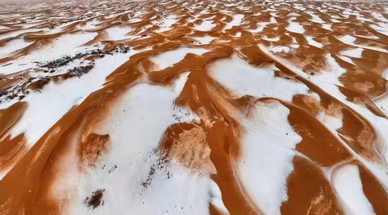 A desert in the Ningxia Hui autonomous region was covered in white after a recent heavy snowfall. [Photo by Yue Changhong/For chinadaily.com.cn]