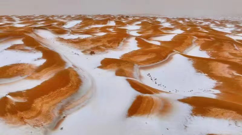 A desert in the Ningxia Hui autonomous region was covered in white after a recent heavy snowfall. [Photo by Yue Changhong/For chinadaily.com.cn]