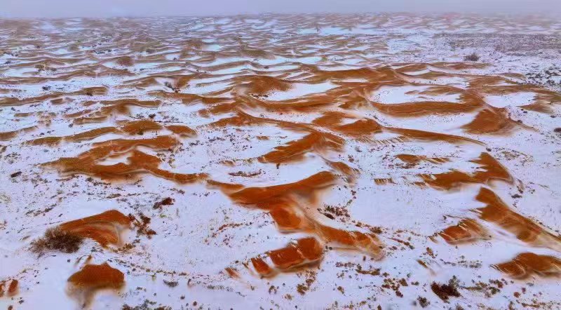 A desert in the Ningxia Hui autonomous region was covered in white after a recent heavy snowfall. [Photo by Yue Changhong/For chinadaily.com.cn]