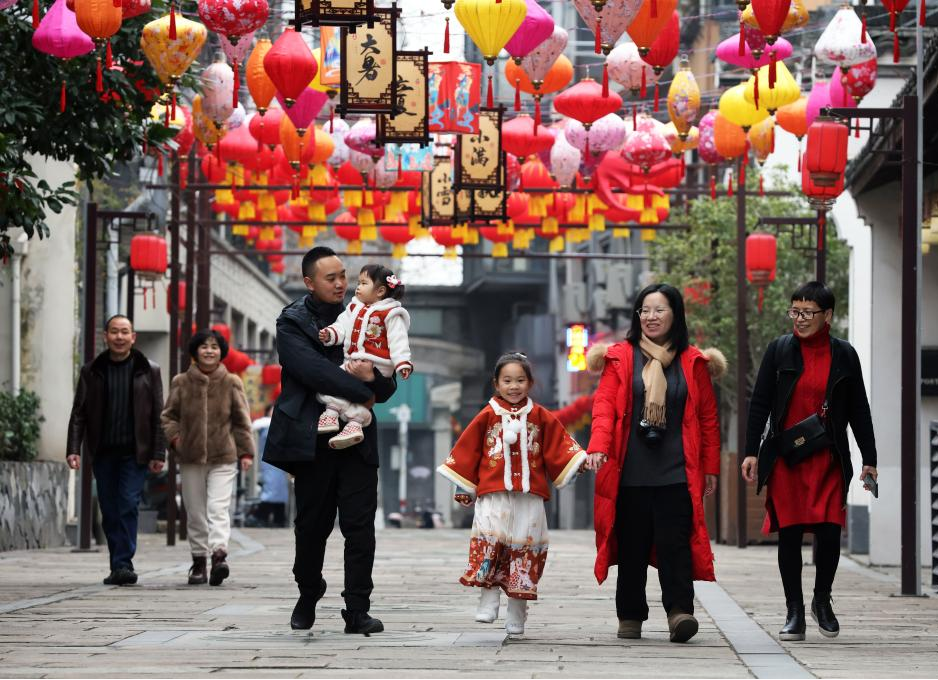 Tourists have fun in Qianyuan Town of Deqing County, Huzhou, East China's Zhejiang province, Jan 22, 2023. [Photo/Xinhua]