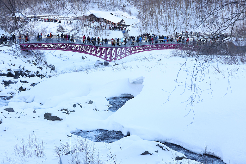 Embark on a mesmerizing journey to the frozen beauty of the Changbai Mountain in Jilin province! The renowned Changbai Waterfall hot springs are like fire-breathing dragons, and they create a mystical atmosphere.
