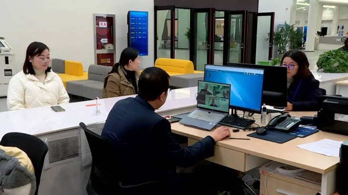 Staff members help the legal person of Asieris Pharmaceutical Technology Co Ltd apply for electronic business license online. [Photo/WeChat ID: weigg6666]