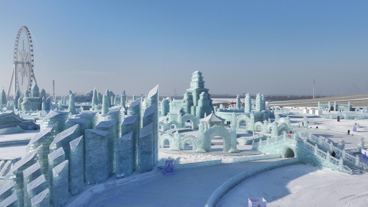 Crystal clear ice and snow artworks turn Harbin Ice and Snow World in Harbin, Heilongjiang province, into a sparkling scene. [Photo by Zhao Tianhua/For chinadaily.com.cn]