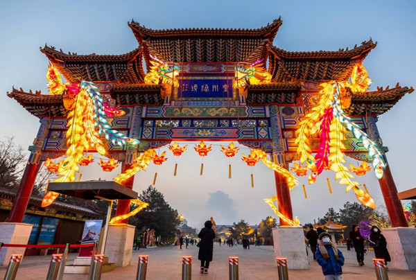 As New Year's Day approaches, various lanterns and colorful lights illuminate Saishang Old Street in Hohhot, capital city of North China's Inner Mongolia autonomous region. [Photo by Ding Genhou/For chinadaily.com.cn]