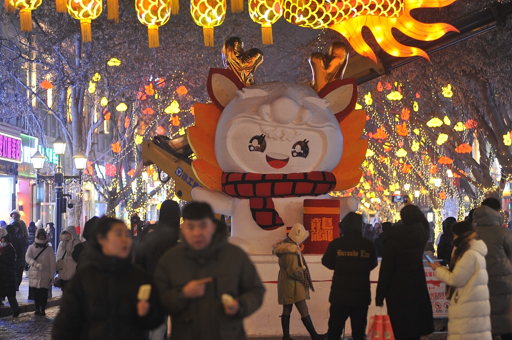 People visit the Central Street in Harbin, capital of Heilongjiang province, Jan 2, 2024. [Photo/VCG]