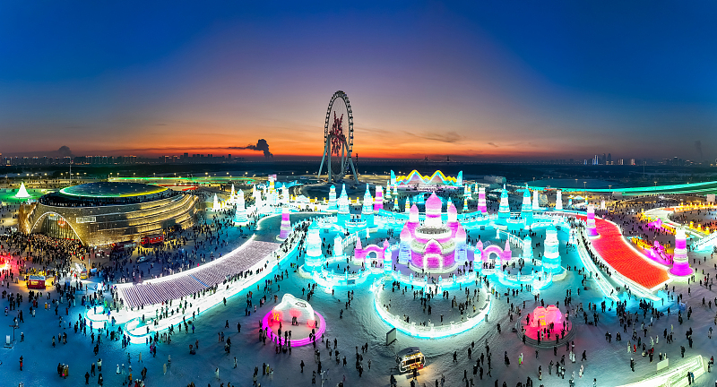 The Harbin Ice-Snow World opens to public in Harbin, Northeast China's Heilongjiang province on Dec 18, 2023. [Photo/VCG]