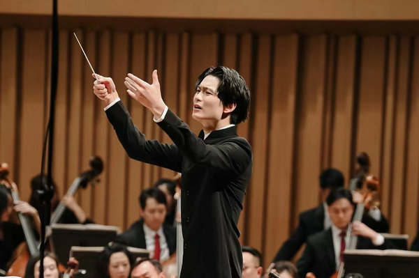 Conductor Jin Yukuang at the concert. [Photo provided to China Daily]