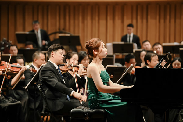 Pianist Luo Wei at the concert. [Photo provided to China Daily]
