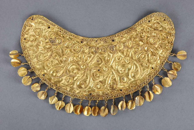 A crescent-shaped gold accessory, Eastern Han Dynasty (25-220), from the collection of the Inner Mongolia Museum [Photo/Official WeChat account of the Inner Mongolia Museum]