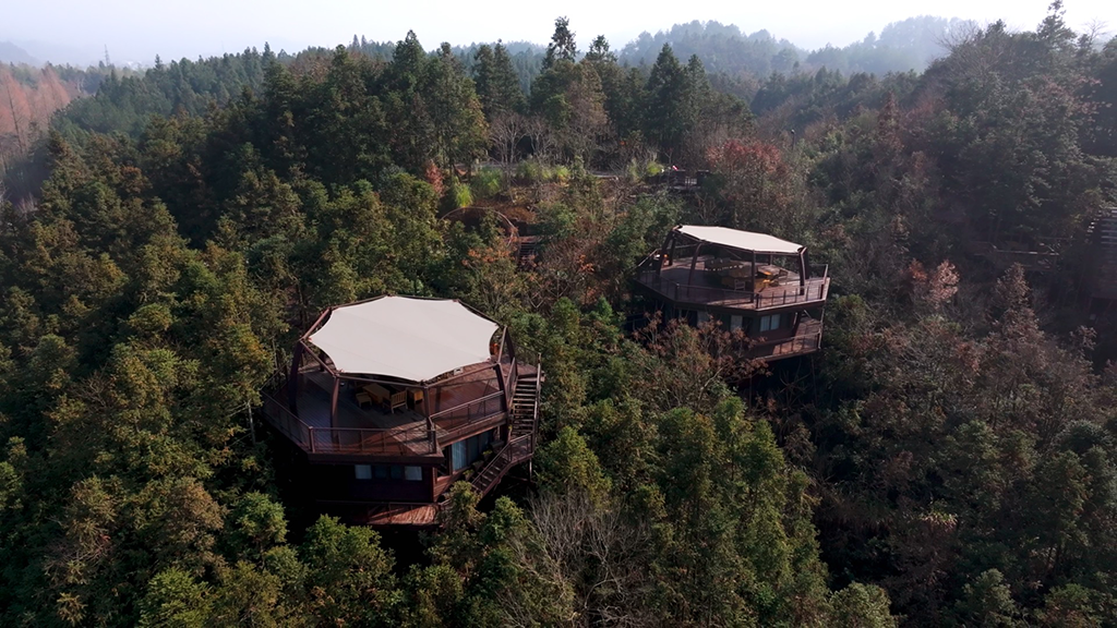 A remarkable and unique hotel lies in a pine forest in Xiuning county, Huangshan city of East China’s Anhui province. [Photos provided to chinaservicesinfo.com]