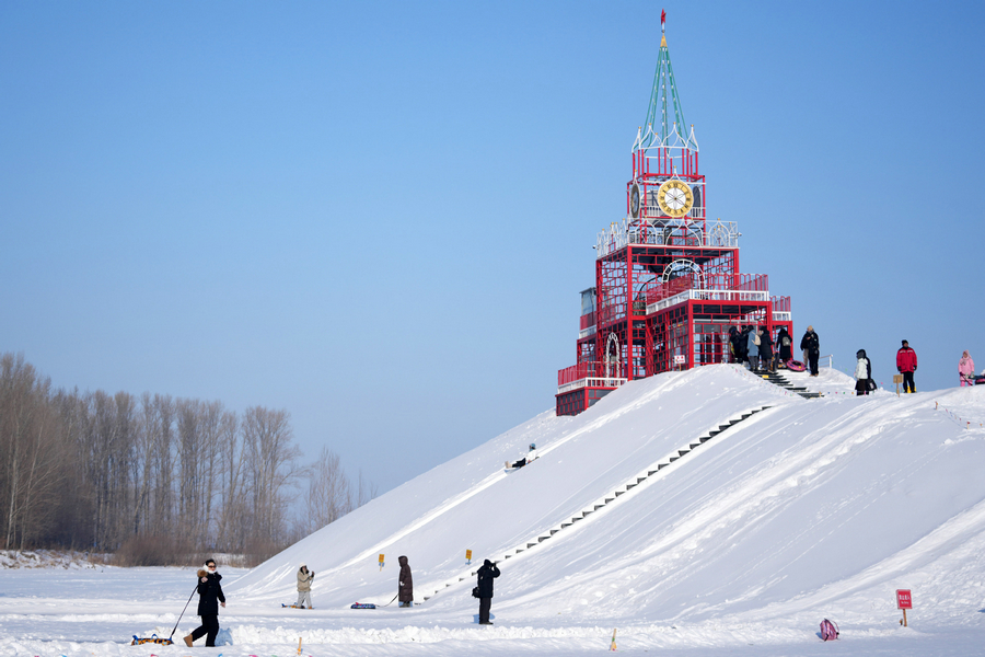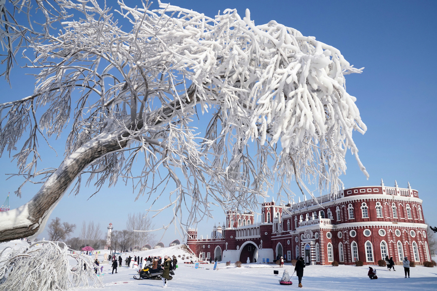 People enjoy themselves at the Volga Manor in Harbin, Northeast China's Heilongjiang Province, Jan 7, 2024. [Photo/Xinhua]
