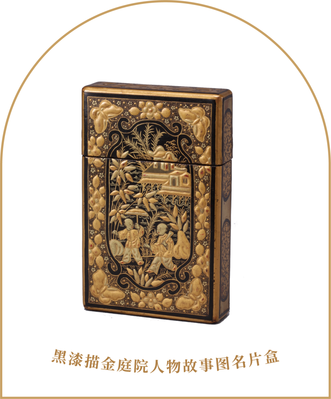 A black lacquered name card holder with gold figure illustration [Photo/Official WeChat account of the Dongguan Museum]