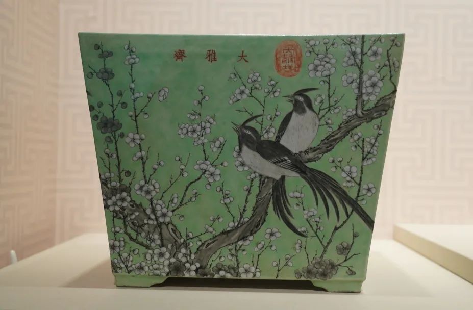 Famille-rose flowerpot with bird and flower patterns, Guangxu reign (r. 1875-1908) of the Qing Dynasty [Photo/Official WeChat account of the Jiangxi Provincial Museum]