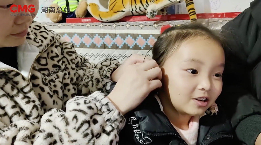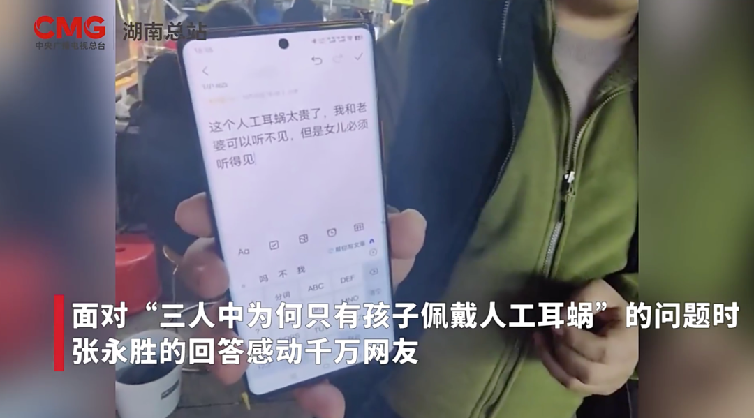 For the first time, Zhang heard his daughter's voice after wearing the artificial cochlea. She said: "Daddy, I love you."