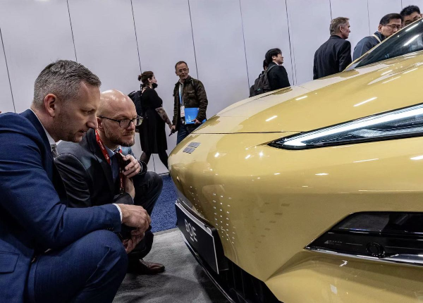 Auto manufacturer Geely brought its flagship electric sedan Galaxy E8 with partner BOE to the 2024 Consumer Electronics Show in Las Vegas on Tuesday.
