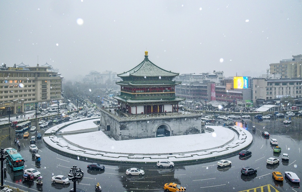 A snowy magic blankets Xi'an! Residents and tourists in Xi'an, Shaanxi province, embraced the enchanting winter scenes around the Bell Tower on Jan 16. The ancient city transformed into a picturesque winter wonderland.