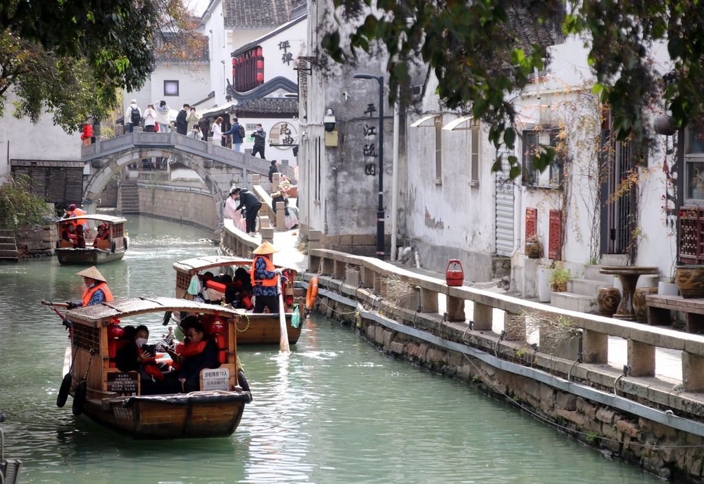 Sailing through the charm of Suzhou! Tourists hopped on hand-paddled wooden boats to explore the water lanes of Pingjiang Road in Suzhou, Jiangsu province on Jan 16. Basking in the warm winter sun, Suzhou's Gusu water lanes have become the go-to spot for the unique “waterway adventure” they offer to visitors gliding through the picturesque scenery.