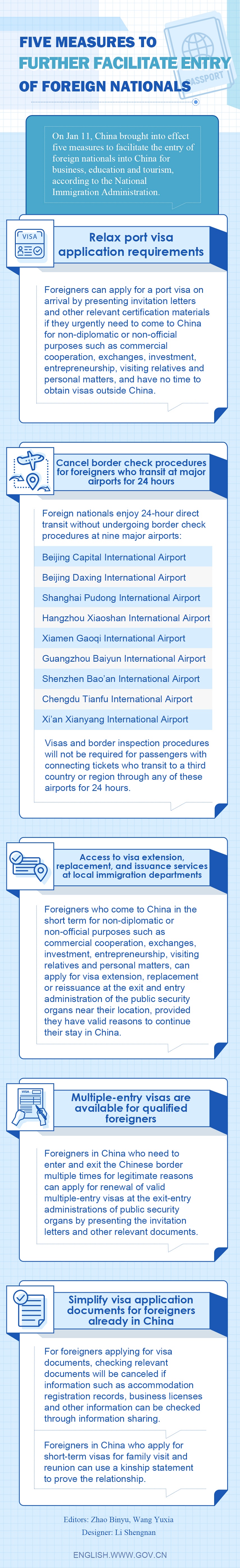 Five measures to further facilitate entry of foreign nationals