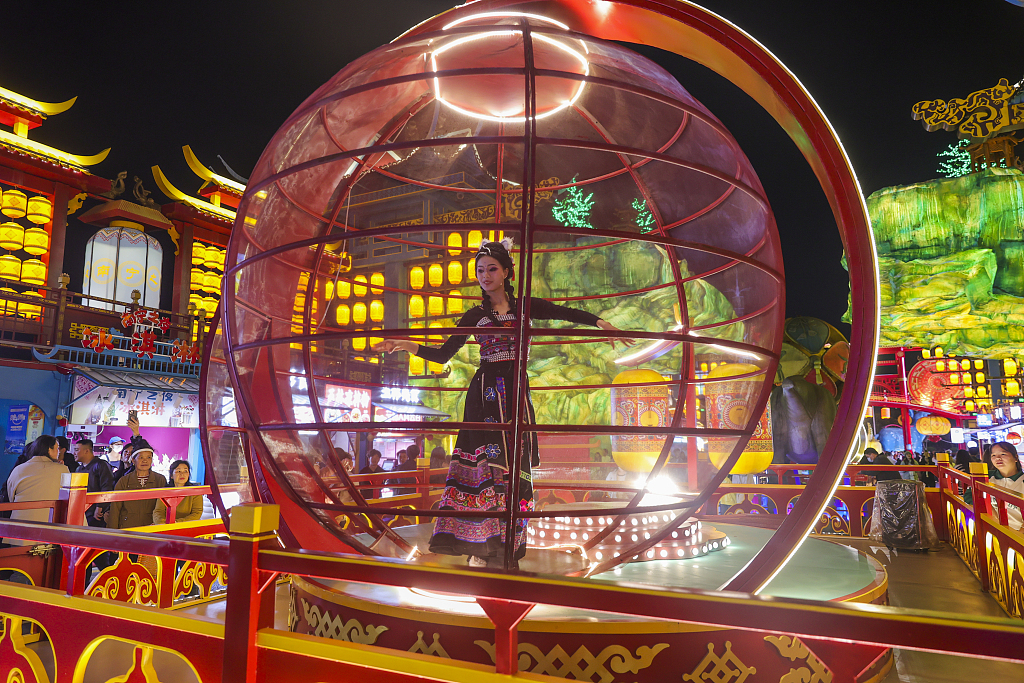 A dancer performs at the night market named "The Night of Nanning" in Nanning, Guangxi Zhuang autonomous region on Jan 17, 2024. [Photo/VCG]