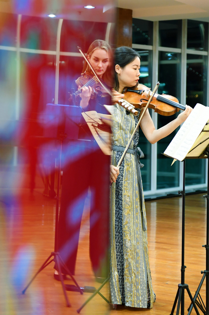 Artists from the New York Philharmonic perform during the 2024 "Happy Chinese New Year" launch ceremony at the Chinese Consulate General in New York, on Jan 16, 2024.[Photo/Xinhua]