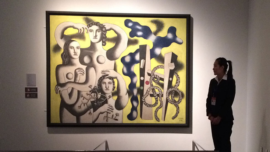 A file photo shows a work by French artist Fernand Leger on display at the "Ten Masterpieces of French Painting" exhibition in Beijing.[Photo/CGTN]