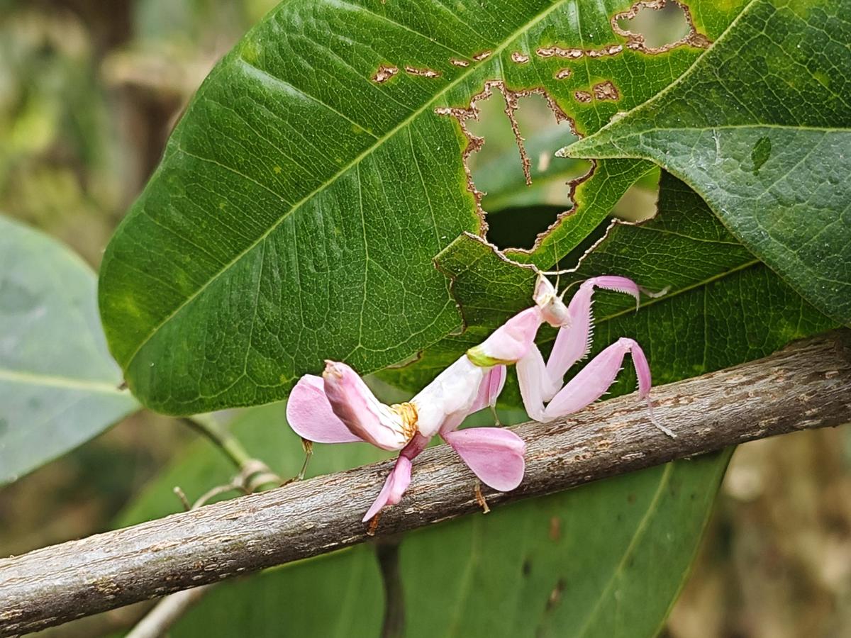 A pink mantis resembling an orchid is discovered in Yaofang village, Ning’er county, Pu'er city, Yunnan province. [Photo/chinadaily.com.cn]