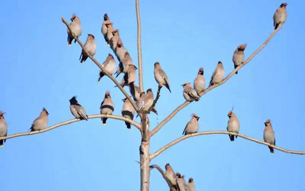 On Jan 18, the woods of the Tianqiaoling Forest Area in Northeast China's Jilin province came alive at the sight of a flock of Bohemian Waxwings. These birds added a vibrant touch to the winter scenery.