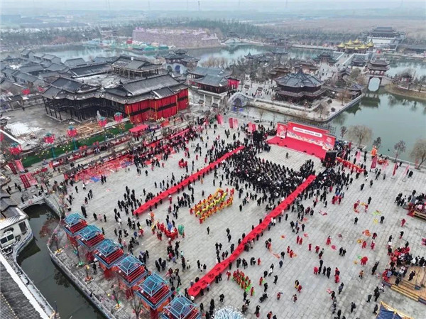 The 2024 Qingdao Spring Festival Rural Cultural Tourism Festival kicks off in the ancient town of Jimo, Qingdao on Jan 18. [Photo/Dazhong Daily]