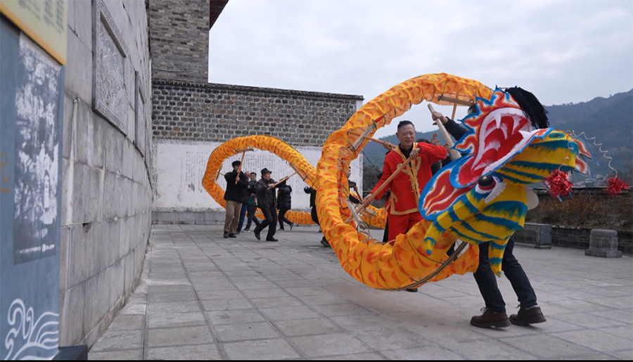 Residents practice the dragon lantern dance in Zhenyuan county of Guizhou province on Jan 15. [Photo by Che Fenglu/For chinadaily.com.cn]