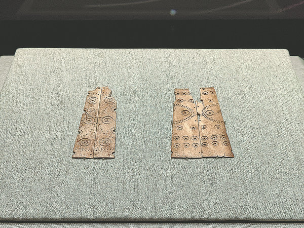 The boards adorned with concentric circles and dotted lines were found on the left side of her chest. These two patterns are typical of the Neolithic, Hebei Normal University archaeology professor Tang Huisheng says.
