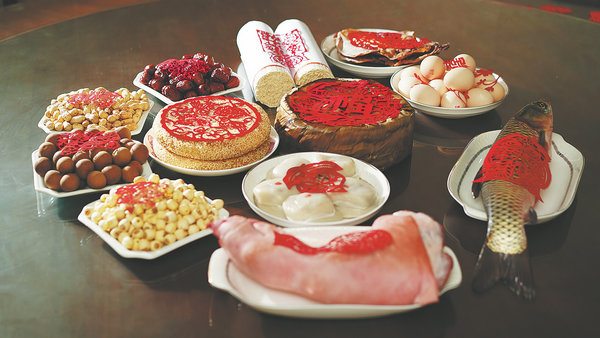 "When I got married, we had a big rice cake with a cake-shaped paper-cut on it, and a pair of fish with a fish-shaped paper-cut on them," says Zhou.