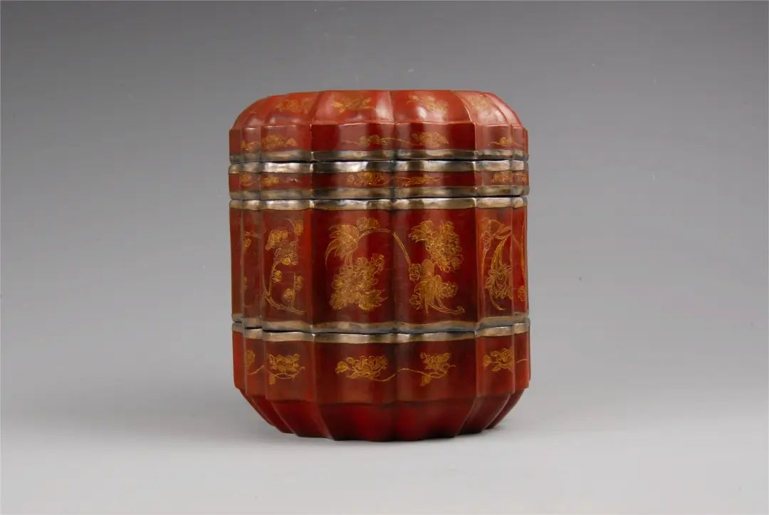 Red lacquer cylindrical vanity box with gold figure and floral patterns, Southern Song Dynasty [Photo/Official WeChat account of the Changzhou Museum]