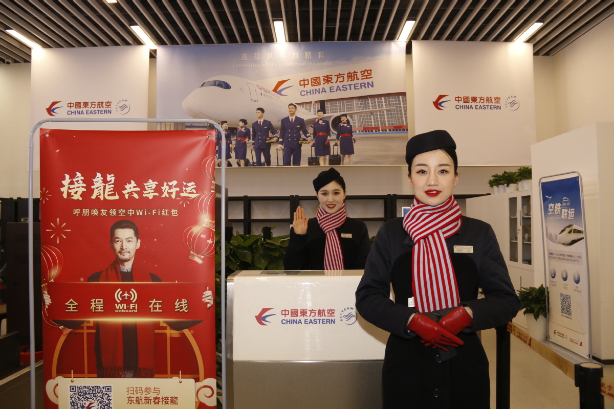 A rail-air transit service center is launched on January 2 at the Shanghai Honggiao Railway Station, allowing air travelers transiting via Shanghai's two airports to check in in advance at the railway station. [Photo provided to China Daily]