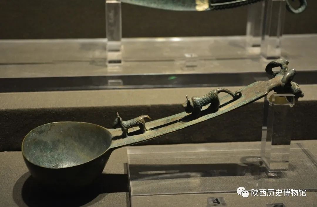 This intricately designed ladle embodies the style of steppe bronze ware, which is characterized by animal sculptures as a dominant form of decoration. Unearthed from Qingjian county, Shaanxi province, in 1977, it is now in the permanent collection of the Shaanxi History Museum.