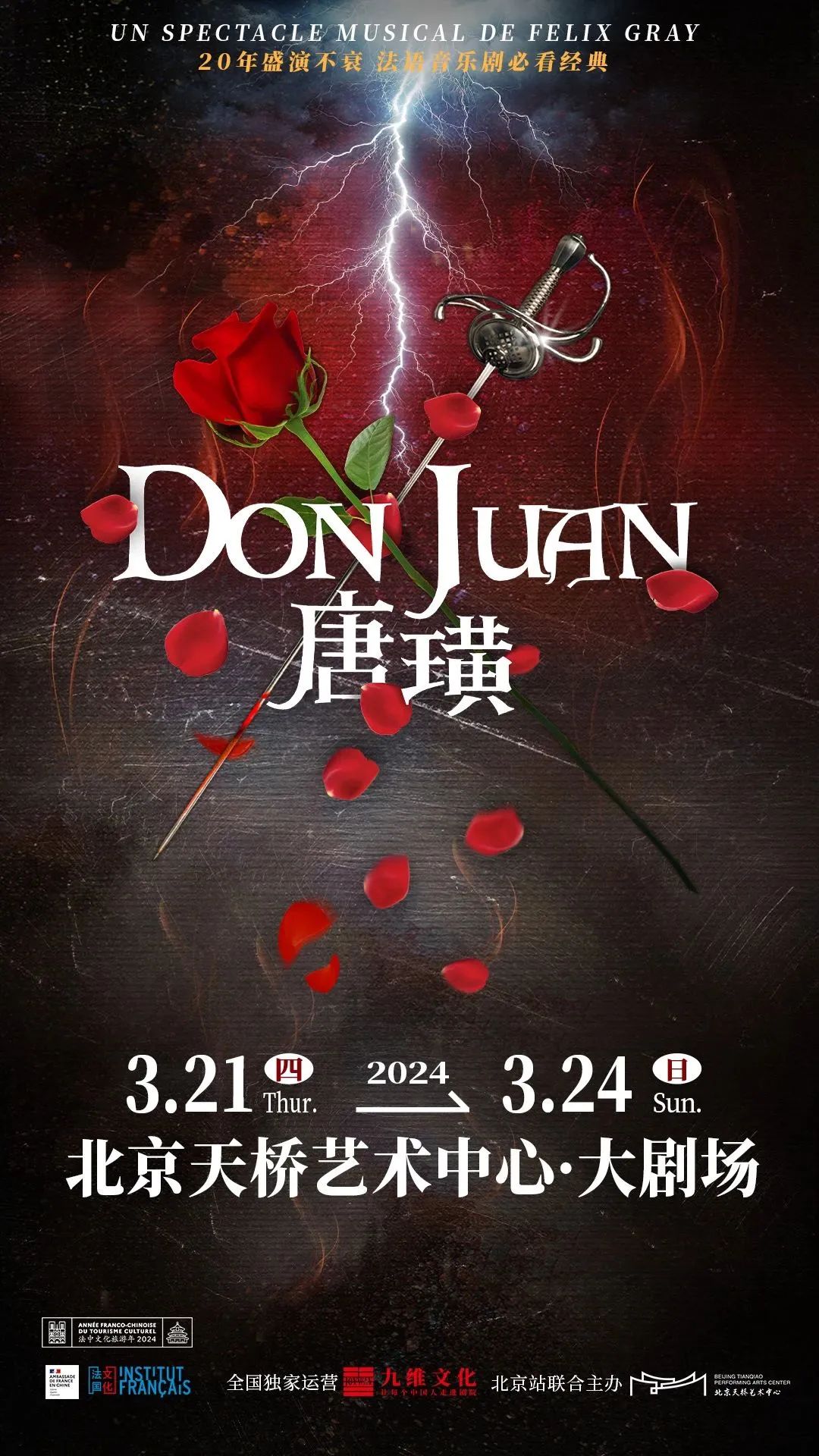 A famed character in Western literary history, Don Juan has long been synonymous with the charming libertine. Over centuries, literature, drama, music, and film have depicted him endlessly. Don Juan transcends being merely a rogue; he's evolved into a rich cultural symbol and an enchanting "antagonist" in countless hearts. Don't miss the French musical Don Juan at Beijing Tianqiao Performing Arts Center from March 21 to 24!