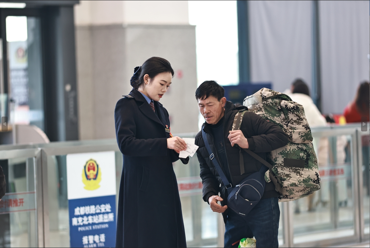 In the ongoing Spring Festival travel rush, there are 135 young staff members also born after 2000, like Yu, working in Chongqing North Railway Station depot. All of them contribute their efforts to the safe, orderly and warm travels for passengers in their own posts, protecting their way back home with actions.