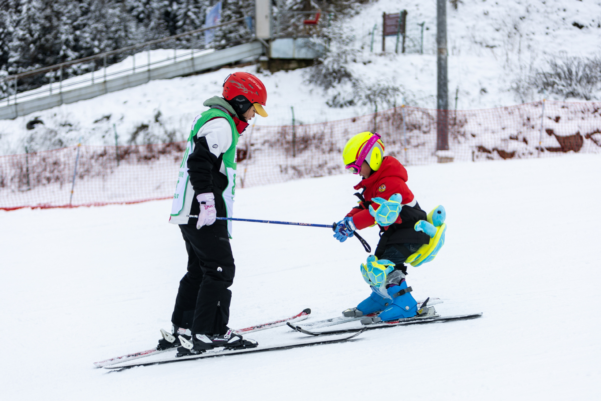 A boy learns skiing at a ski resort in Shizhu Tujia autonomous county of Chongqing on Jan 26, 2024. [Photo/Xinhua]