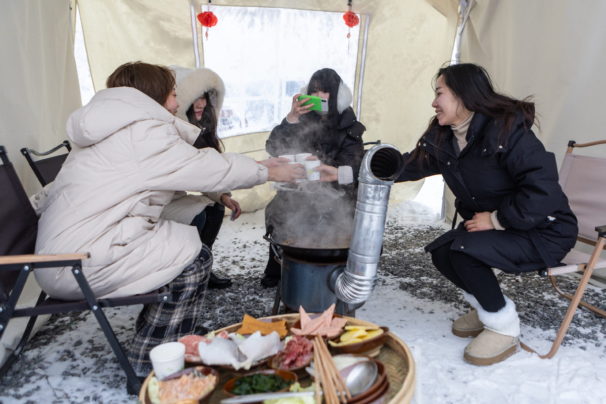 Tourists go camping at a campsite in Fengdu county of Chongqing on Jan 25, 2024. [Photo/Xinhua]
