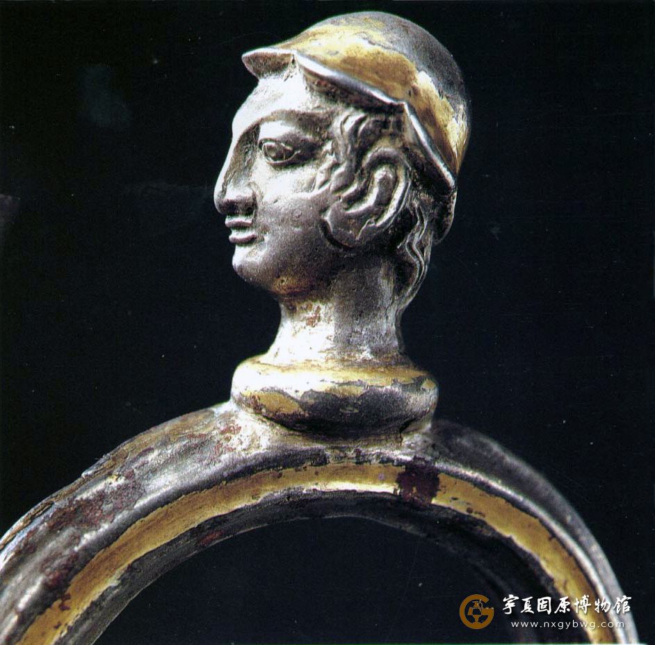 Detail of the human head cast on the ewer’s handle [Photo/Official website of the Guyuan Museum of Ningxia]