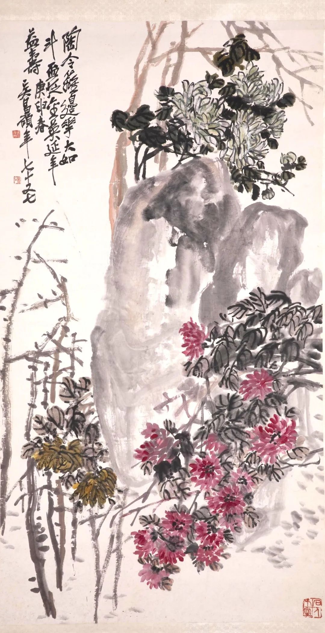 Chrysanthemums and Rocks, Wu Changshuo (1844-1927), Qing Dynasty [Photo/Official WeChat account of the Tianjin Museum]