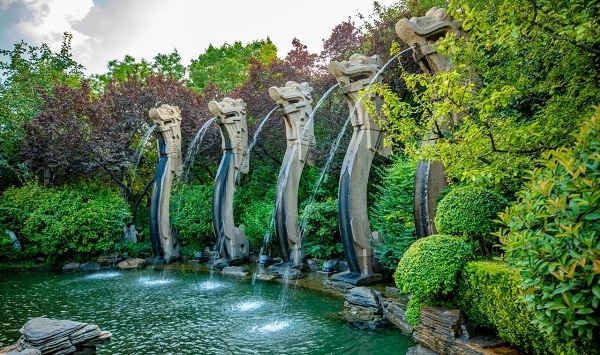 Facing the east gate of the park is the "Five Dragon Sculpture", in which five long dragons soar into the sky as they spout wisps of spring water, symbolizing auspiciousness. This is also a must-visit spot for those looking to take photos.