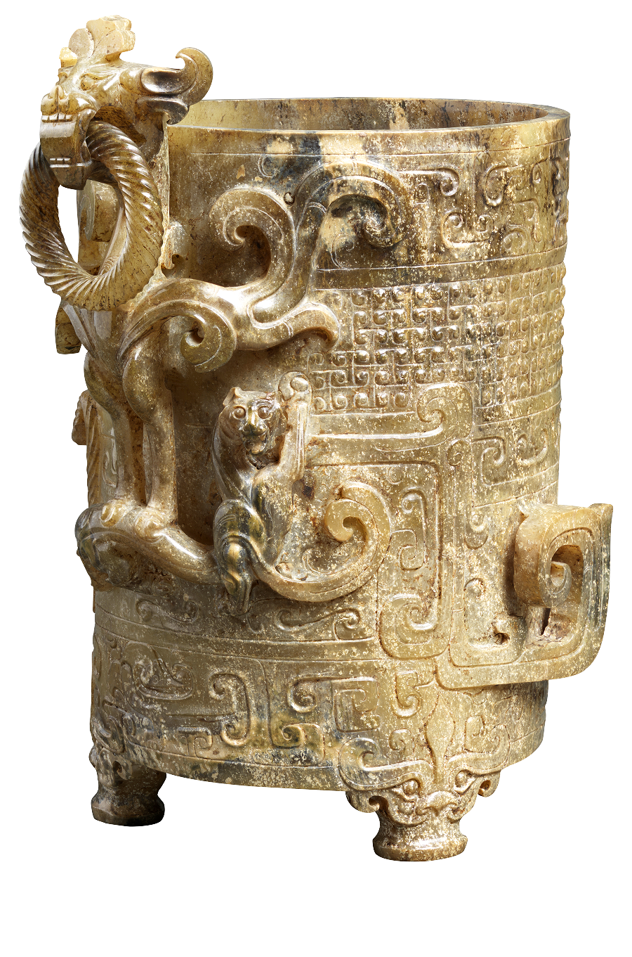 "It was an iconoclastic time in every sense of the word, with rules being dismantled in every field, including art-making," Zuo says. "The jade designs of the time had moved away from the symmetrical design scheme adopted by the Shang Dynasty and Zhou Dynasty ritual bronzes."