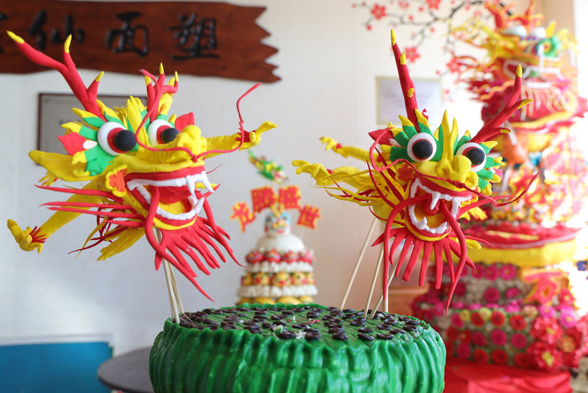 Dough sculptures made by Xie Yunxian. [Photo by Li Kerong/For chinadaily.com.cn]