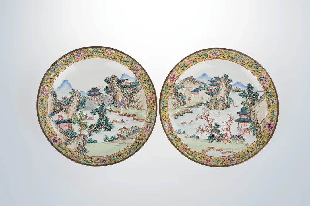 Two fruit trays decorated with landscape motifs, from the collection of the Art Museum of the Chinese University of Hong Kong [Photo/Official WeChat account of the Tianjin Museum]