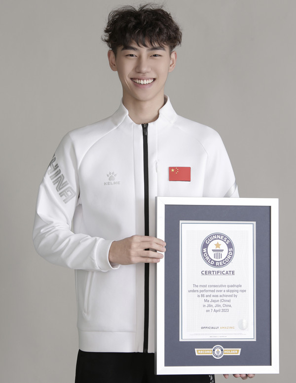 On Feb 4, 18-year-old Ma Jiajun from Jilin province received official recognition from the Guinness World Records for breaking the previous record of 82 consecutive quadruple unders with a skipping rope, achieving an incredible 86 jumps.